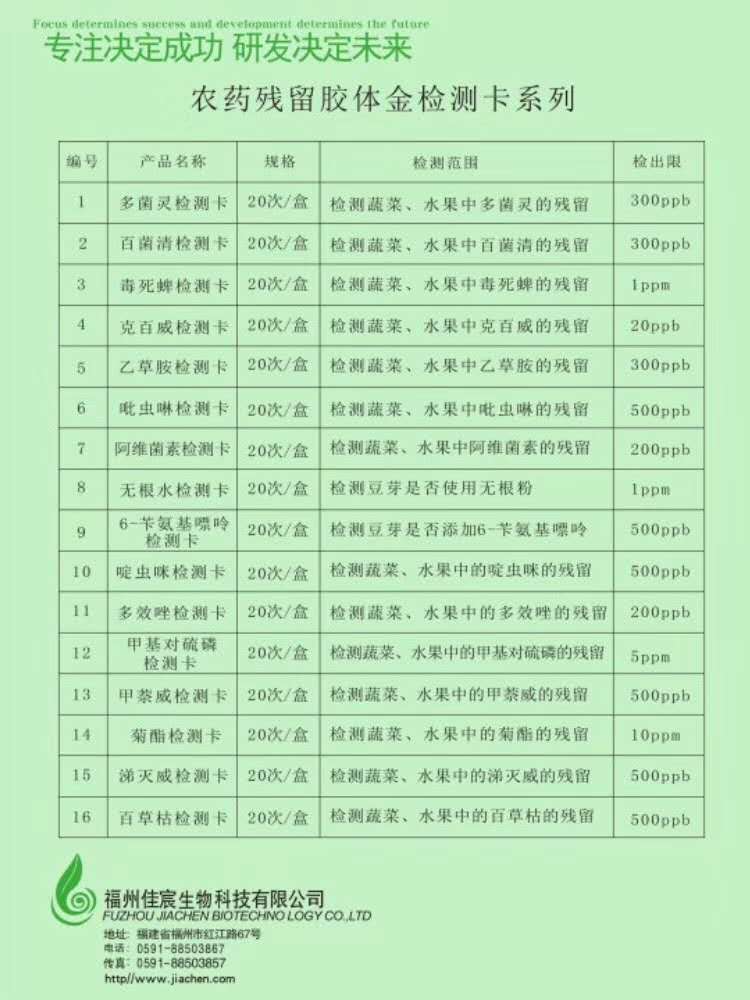 另外,公司也提供蔬菜水果中农药残留胶体金检测卡: